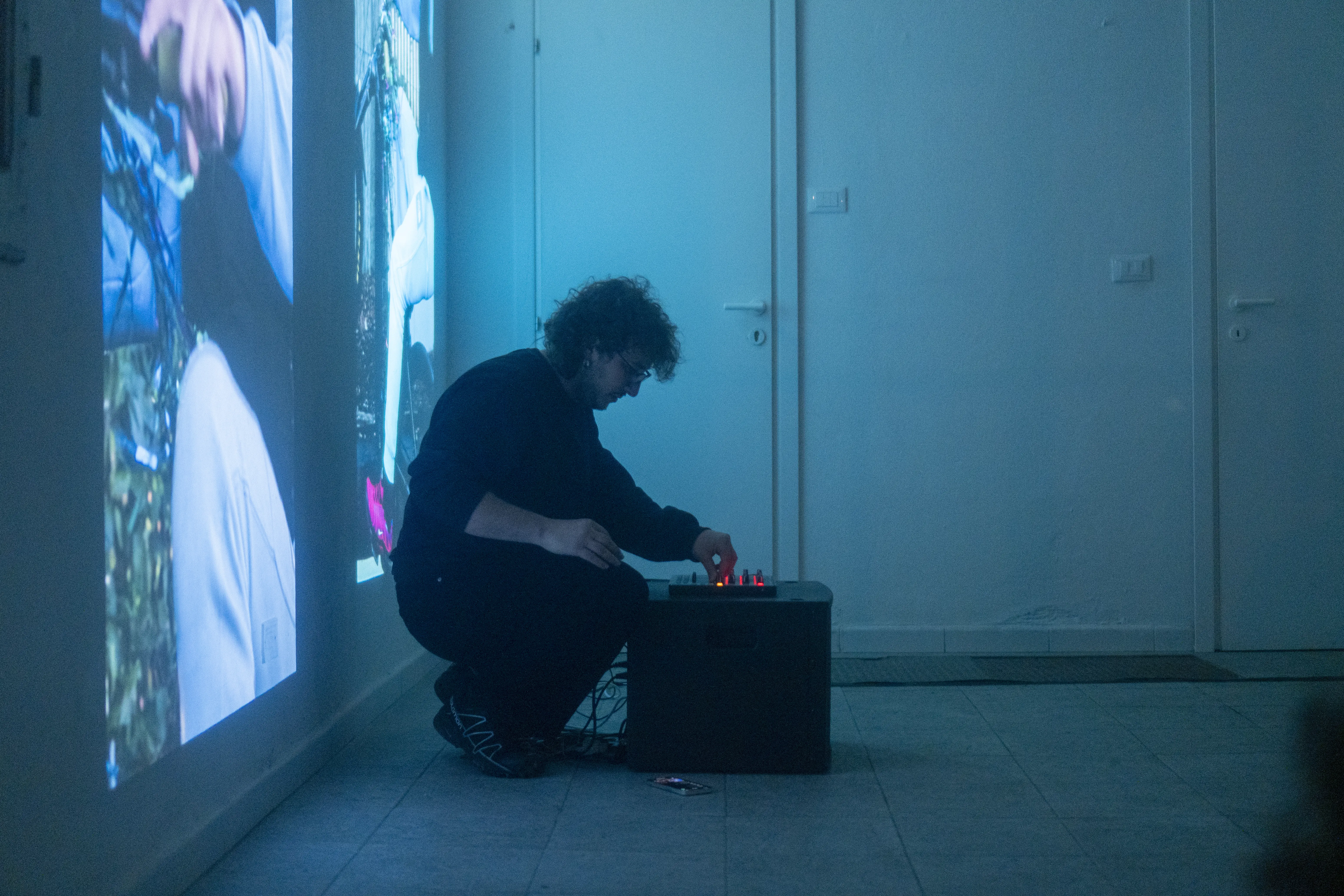 Cadùco is a space of vertical tension, in which the videos by Marco Erpete and the live electronics by