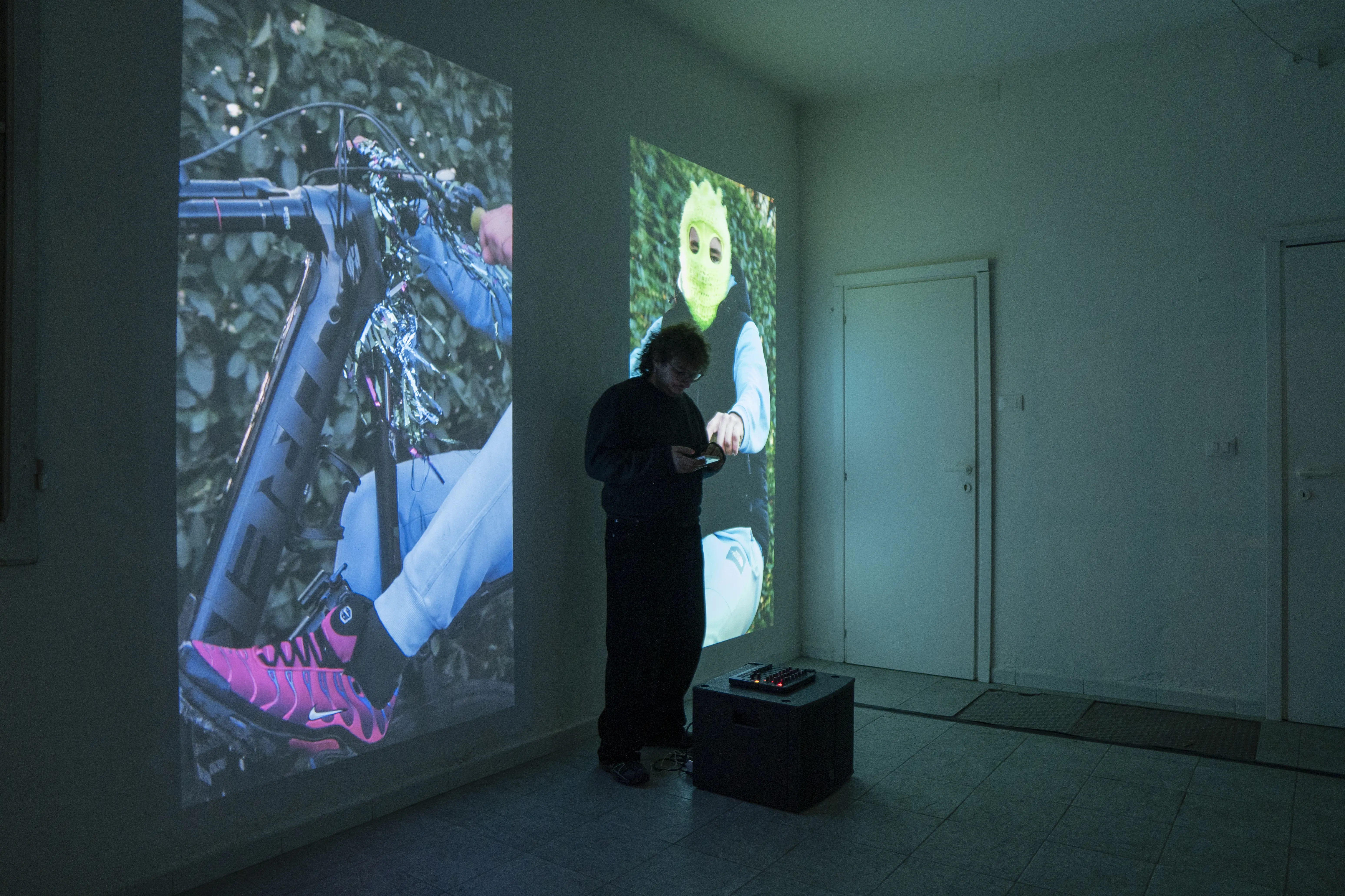 Cadùco is a space of vertical tension, in which the videos by Marco Erpete and the live electronics by